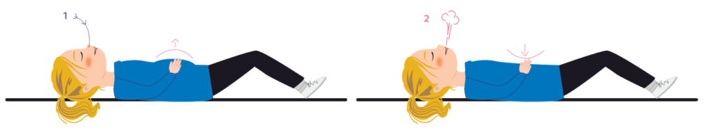- Coloca una mano sobre el abdomen y otra sobre el pecho.
