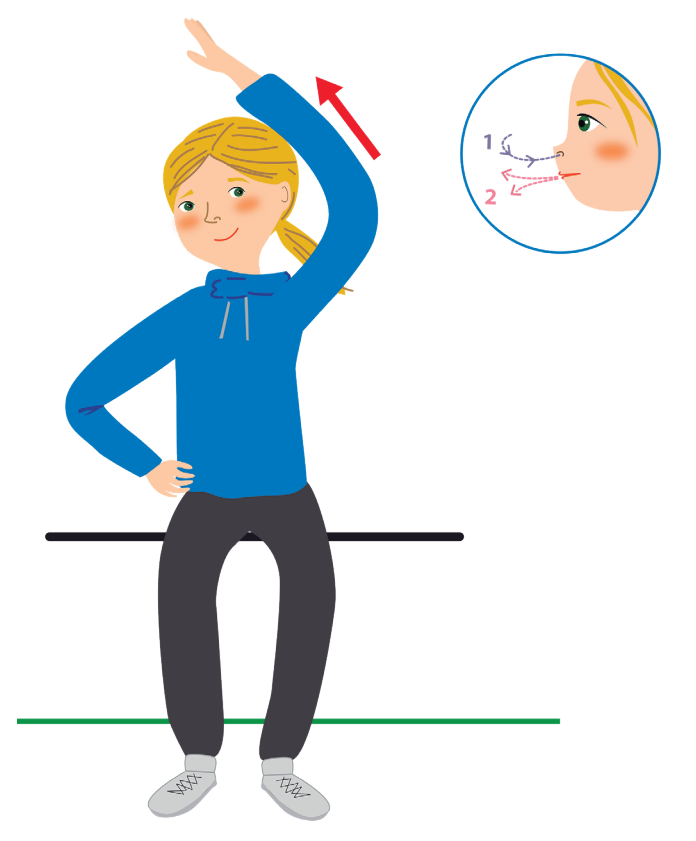 - Inspira por la nariz profundamente, tratando de dirigir el aire al lado del brazo estirado.
