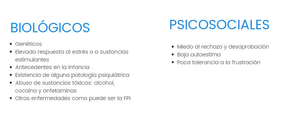 Los trastornos de ansiedad suelen estar producidos por una compleja interacción de factores, los cuales los podemos englobar en dos grandes grupos: